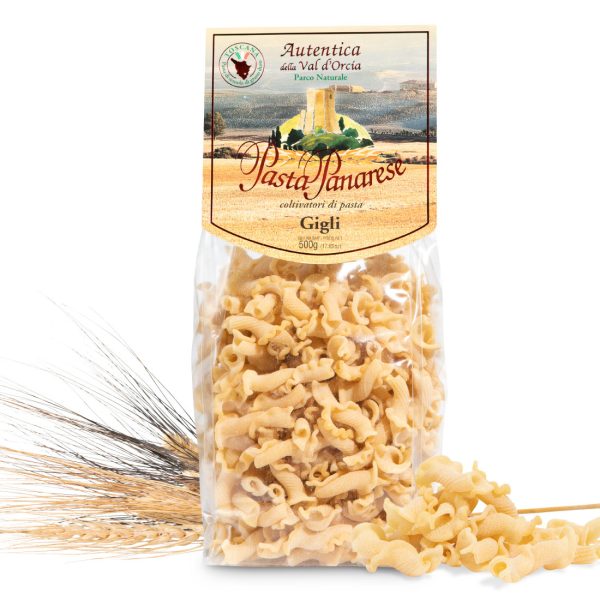 Gigli fra Pasta Panarese er en smuk pasta, som minder om liljen(heraf navnet), symbolet på byen Firenze. Formen, som små liljer, gør den perfekt til at fange saucer, så hver en bid bliver fuld af smag.